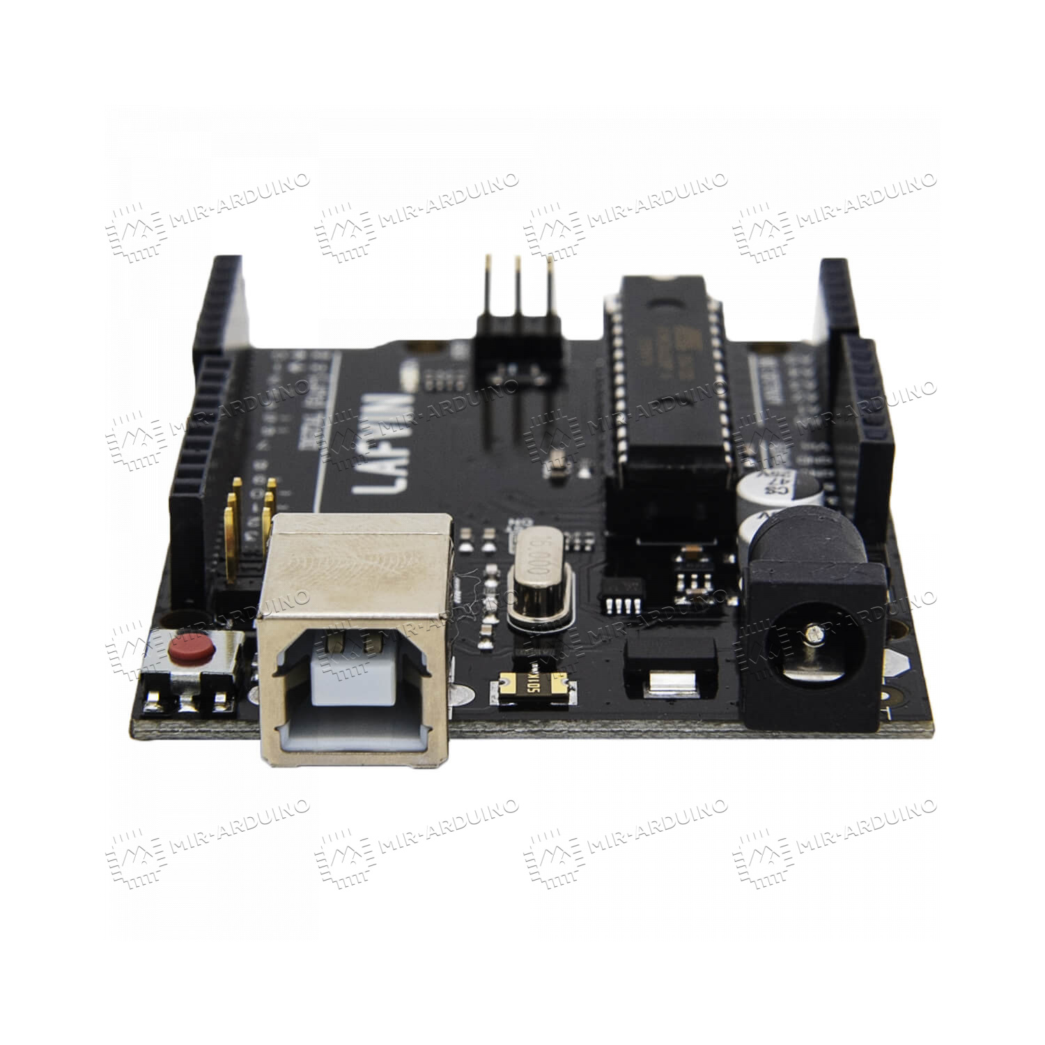 Набор для моделирования Ардуино (Arduino) Tank Robot Lafvin – умный конструктор для проектирования робота-танка. Комплект не требует использования паяльника, подойдет для детей и начинающих робототехников. Собранный робот будет передвигаться по заданной траектории, объезжать препятствия. Управлять танком можно с телефона, для синхронизации используется Bluetooth модуль. Набор включает в себя элементы корпуса робота, двигатель, датчики, провода, аккумулятор, пульт управления, зарядный кабель.